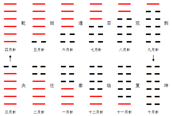 辟,意为君主。以六十四卦中的十二卦配十二个月,每一卦为一月之主,因此又称为“十二辟卦”。